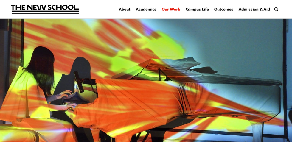 Closed eyes traditionally make way for open ears. Orchestral musicians drape themselves in black to enhance and grant priority to their sound — appealing to one sense at a time. But at The New School, where tradition is traditionally disrupted, angular notes stack like polygons, and dismantled high hats splash wild blue lightning.